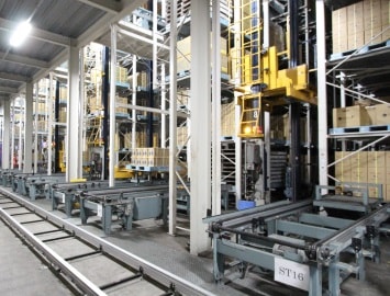 続いて同年8月、9月の連休を利用して、パレット自動倉庫のスタッカークレーン9 台のうち4台をダイフク製スタッカークレーンに交換しました。こうして順次リニューアルを行うことにより、パレット自動倉庫の安定稼働を実現しています。