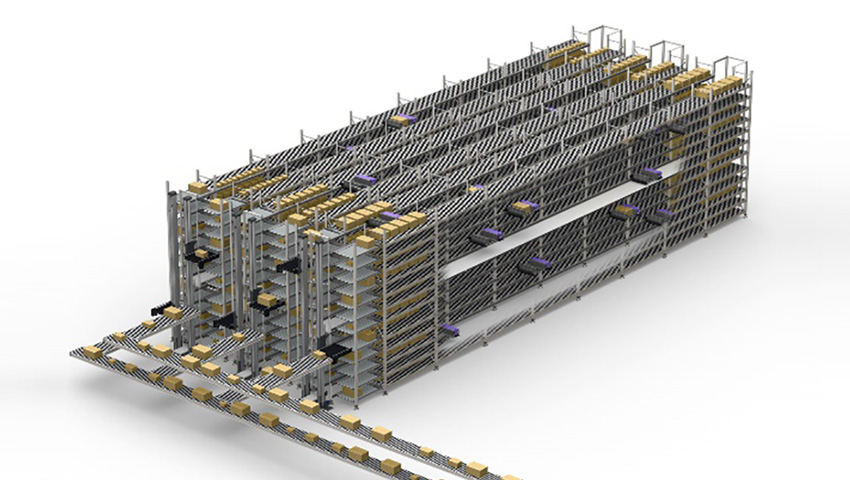 The Shuttle Rack M is a high-capacity automated warehouse system that uses carts on each level of the rack to provide both temporary storage and sorting functions. As it can store and sort large quantities of goods within limited spaces, it is mainly used in e-commerce logistics, which handles a wide variety of products in small lots. It is also used in retail, manufacturing, transportation, and agriculture, contributing to efficient sorting, storage, and picking operations. The carts are now capable of storing two items depth-wise on the shelf, allowing for more efficient and higher-density storage.