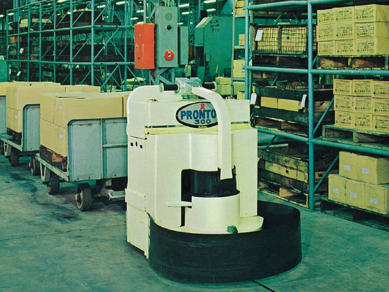 Nowadays, AGVs are typically used at factories as well as at logistics bases for e-commerce. Prontow was the first to be made in Japan and Daifuku started manufacturing and selling it in 1965 thanks to a technical alliance formed with a U.S. company. It came into the limelight as a product that can automate transportation work that was performed by workers and became one of the products symbolic of Daifuku in the 1960s.