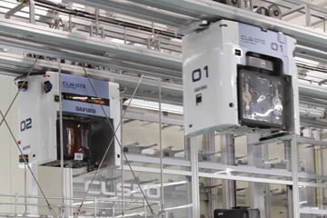 The Telelift is a self-driving trolley-type transport system that integrates a container with a drive unit that runs along a powered track. The system can run horizontally, vertically, and around curves, and Daifuku has even produced large-scale Telelift systems extending multiple kilometers over multiple floors.