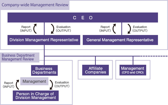 We conduct quality management system initiatives based on top management reviews of the quality assurance system, which is linked with feedback from business operation management reviews that evaluate the achievements of each business operation and implement nonconformity corrective measures. In addition, as a company-wide management review, the CEO evaluates and makes judgments on the necessity for changes in the quality management system by reviewing the progress made in achieving our product quality goals with the aim to strive for continuous improvements.