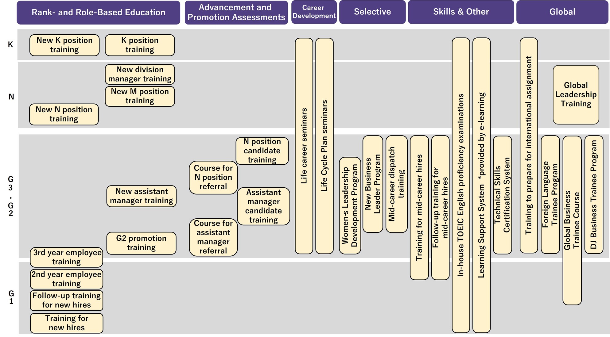 To effectively facilitate the development of human resources, we are deploying systematic and focused measures. In addition to rank-based training, we conduct selective training to develop executive candidates and global human resources. Beginning in fiscal 2021, we began an e-learning prerequisite program for acquiring business skills and knowledge as a requirement for recommending candidates for management positions. In addition to methodically developing candidates for management positions, the program is intended to encourage autonomous learning. Additionally, we reformed our learning management system in fiscal 2022 to work toward enhancing online training throughout the entire Group, including global subsidiaries.