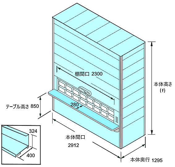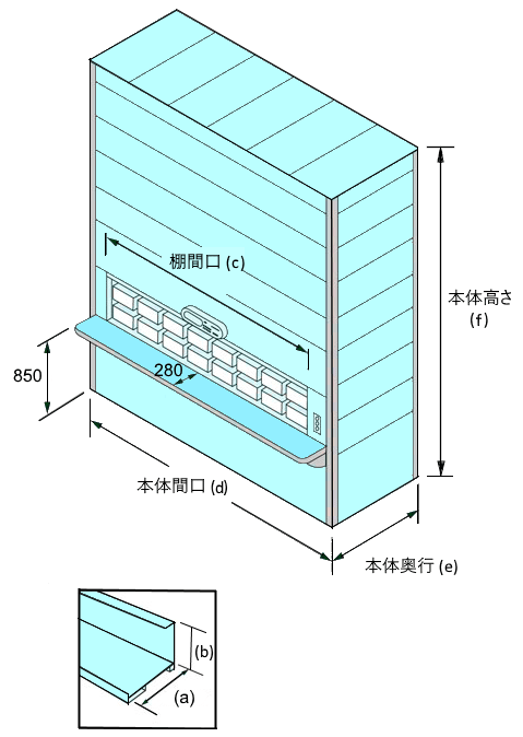| 棚間口(c) | 1800 / 2300 / 3000 (取出し開口部高さ 580) |