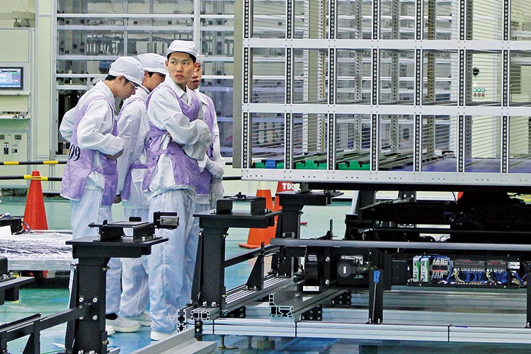 To provide solutions that meet customer needs, we have testing facilities, such as a tall building in which we can perform testing on stacker cranes 40 meters high and facilities where we can perform tests in a clean environment. The standardization of new technology and products has been achieved through advanced research and development and together with realizing quality with low cost, short lead times, and peace of mind, Daifuku has produced many examples of technology and products that were firsts in industry or even the world.